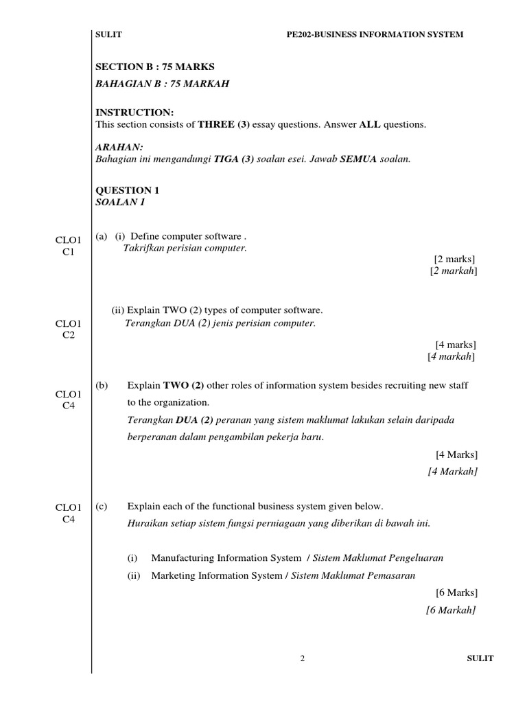 Dpb1033 Management Information System Soalan Final Exam Pdf Sulit Dpb1033 Management Information System Section B 75 Marks Bahagian B 75 Course Hero